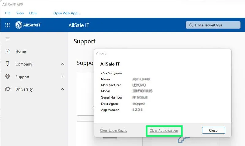 The AllSafe App is your one-stop portal to AllSafe IT. All users can use the AllSafe App to: